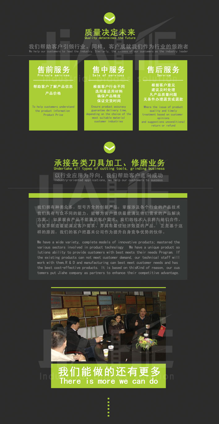 嘉禾機(jī)械科技(馬鞍山)有限公司地處蘇皖兩省交接,長(zhǎng)三角區(qū)域安徽東大門(mén),素有“鋼城”之稱的馬鞍山,中國(guó)刃具之鄉(xiāng)的博望鎮(zhèn),距南京國(guó)際機(jī)場(chǎng)僅不足23公里,地理位置優(yōu)越,交通非常便利。目前固定資產(chǎn)上千萬(wàn)元,擁有大小客戶數(shù)百家。我們憑借優(yōu)良的設(shè)備,精湛的工藝,嚴(yán)格的檢驗(yàn),完善的售后服務(wù),力求產(chǎn)品質(zhì)量精益求精。